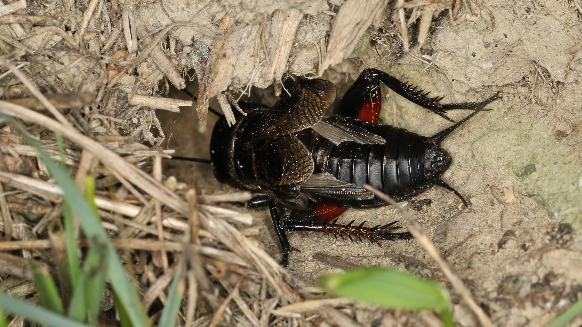 | Feldgrille (Gryllus campestris) ♂ an einer Wohnröhre · 02.08.2015 |