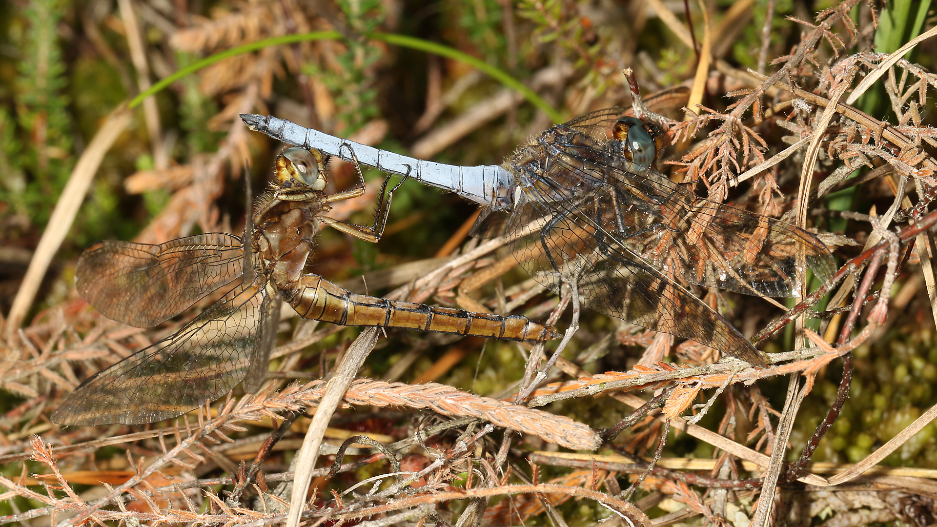 | Kleiner Blaupfeil (Orthetrum coerulescens) ♀♂ nach der Paarung · 20.08.2016 |