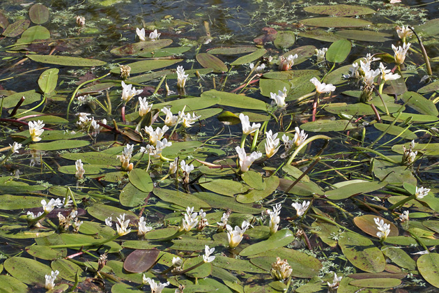 ähneln denen einiger Laichkrautgewächse (Potamogetonaceae), insbesondere den spitz-ovalen bis elliptischen Schwimmblättern des heimischen "Schwimmenden Laichkrauts" (Potamogeton natans) oder "Knöterichblättrigen Laichkrauts (Potamogeton polygonifolius)