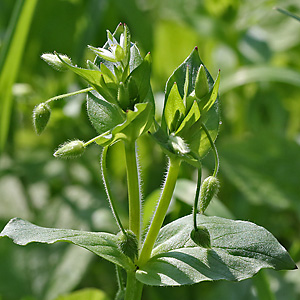 | Wassermiere bzw. Wasserdarm (Stellaria aquatica) ist an feuchte Standorte gebunden |
