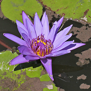 | Vielleicht Nymphaea x cultorum 'Marliacea Rosea', eine Kultursorte der Weißen Seerose | 'Direktor George T. Moore' ist eine Hybride von Nymphaea colorata (Endemit aus Tansania) |