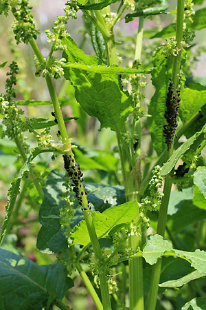 Rumex obtusifolius, in wörtlicher Übersetzung "Stumpfblättriger Ampfer", stammt aus Asien und Osteuropa und kommt heute in Teilen Eurasiens bis Nordafrika vor, bei uns vor allem auf Ruderalflächen und an Wegrändern. Er wird manchmal als Speise- und Heilpflanze verwendet, in Landwirtschaft und Gartenbau aber überwiegend als lästiges Unkraut angesehen.