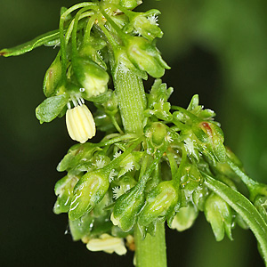 | Der Ampfer-Knöterich (Persicaria lapathifolia) bevorzugt feuchte nährstoffreiche Ruderalflächen, Acker-Ränder, Flußufer etc. und blüht ab Juni. Er ähnelt Persicaria maculosa, die Nebenblattscheiden (Ochreae) an den Blattbasen sind allerdings am oberen Rand kahl oder nur ganz kurz bewimpert. | ||