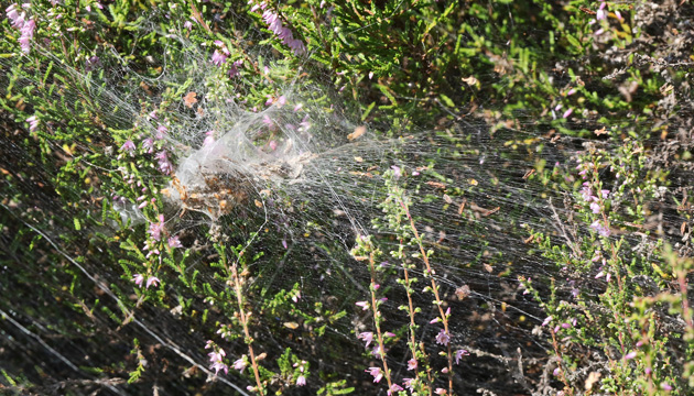 | Trichternetz einer Trichternetzspinne (Agelenidae) · Solingen, NSG Ohligser Heide, 28.06.2025 |