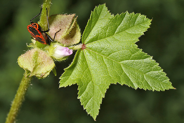| Auch die Quirl-Malve ist bei Feuerwanzen (Pyrrhocoris apterus) beliebt · Solingen, 02.09.2025 |