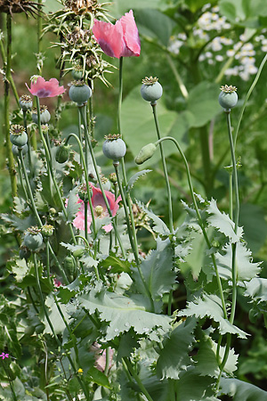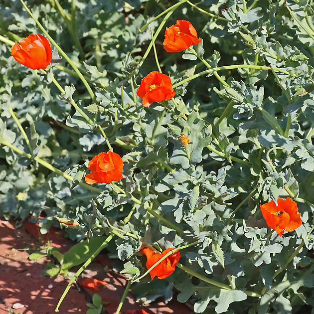 | Der Gelbe Hornmohn (Glaucium flavum) gedeiht an Meeresküsten in nährstoffreichen, leicht salzigen Böden. Die vier zitronen- bis goldgelben Kronblätter erscheinen in der Variante aurantiacum orange bis karminrot. |