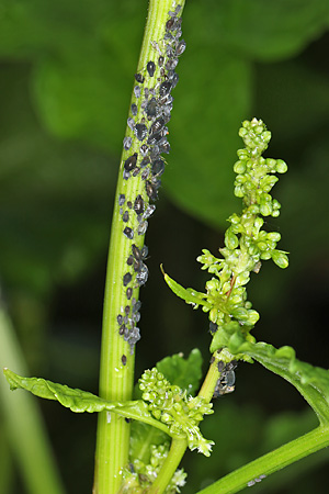 Rumex obtusifolius, in wörtlicher Übersetzung "Stumpfblättriger Ampfer", stammt aus Asien und Osteuropa und kommt heute in Teilen Eurasiens bis Nordafrika vor, bei uns vor allem auf Ruderalflächen und an Wegrändern. Er wird manchmal als Speise- und Heilpflanze verwendet, in Landwirtschaft und Gartenbau aber überwiegend als lästiges Unkraut angesehen.