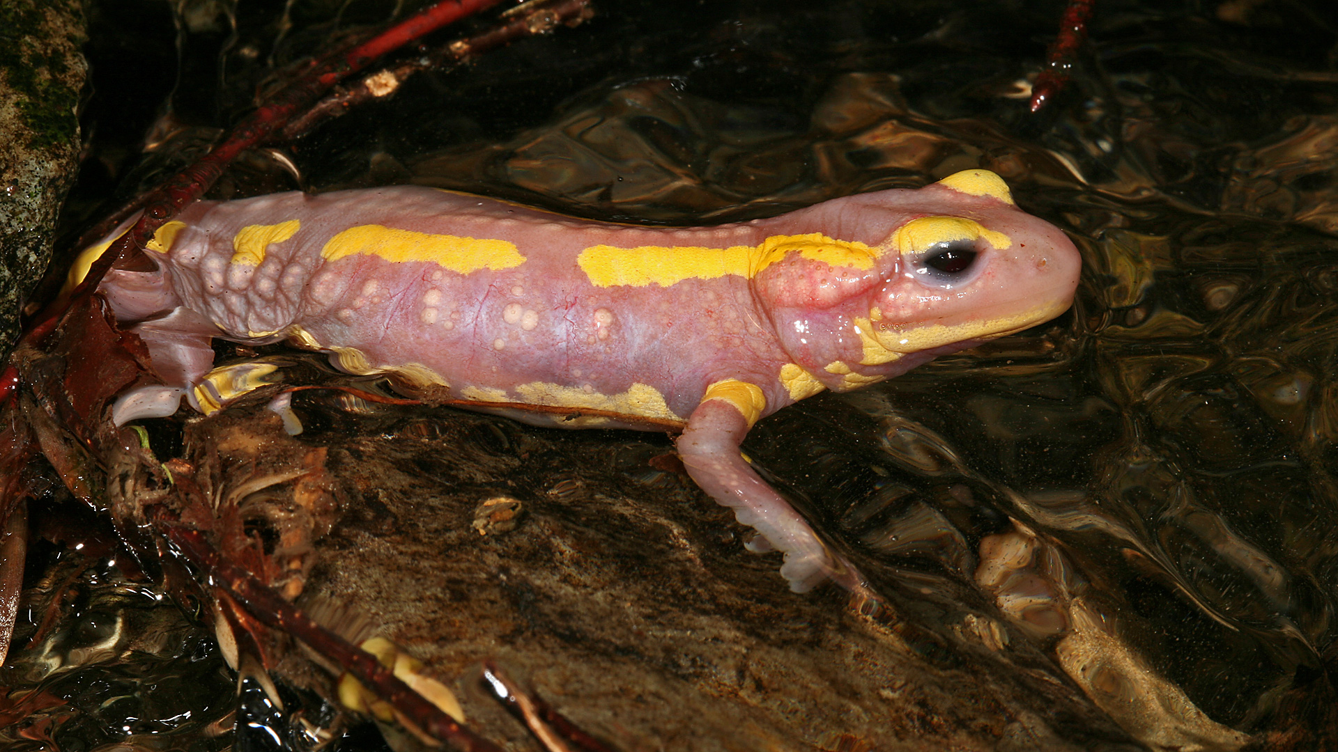 | Teilalbinotischer Feuersalamander (Salamandra salamandra) · 08.05.2009 |