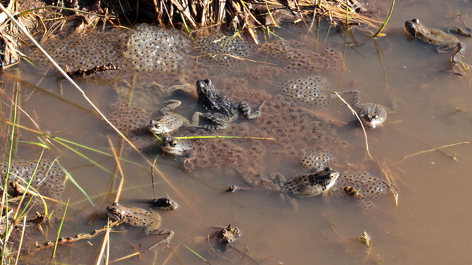 Grasfrösche (Rana temporaria)  mit frischem Laich · 09.03.2014 |